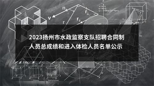根据《扬州市水政监察支队公开招聘合同制工作人员公告》和《扬州市水政监察支队公开招聘合同制工作人员补充公告》,经过报名、资格审查、面试、专业技能实操考核环节,按考生总成绩从高分到低分按岗位拟招聘人数确定等额的体检人选进入体检。现将总成绩及进入体检人员名单予以公示。