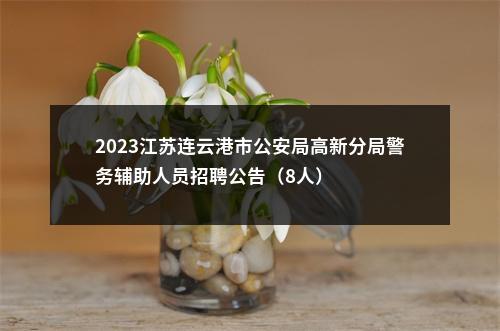 因工作需要,根据《江苏省公安机关警务辅助人员管理条例》《连云港市公安机关警务辅助人员管理办法》《江苏省公安机关警务辅助人员招聘办法》等有关规定,连云港市公安局高新分局决定面向社会公开招聘警务辅助人员8名,有关事项公告如下: