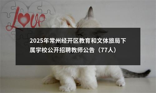 QQ交流群:261882763 丨 公众号:常州中公教师 丨 常州编制珍题常州教师招考信息丨点击咨询 为更好地选拔优秀人才,充实常州经开区学校教师队伍,优化师资结构,根据《江苏省事业单位公开招聘人员办法》(苏办发〔2020〕9号)、《关于进一步做好全省中小学校新进教师公开招聘工作的意见》(苏教规〔2016〕1号)和《关于规范中小学教师流动的意见(试行)》(苏教人〔2022〕7号)精神,结合本地实际,2025年常州经开区教育和文体旅局下属学校面向社会公开招聘教师77名(进编)。现将有关事项公告如下:一、招聘对象