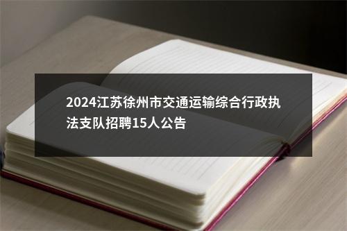 公众号:常州中公教育丨招警招考信息 招警报考指导丨点击咨询 徐州市交通运输综合行政执法支队为徐州市交通运输局所属副处级、财政全额拨款的公益一类事业单位,依法承担全市交通运输综合行政执法工作。为更好地选拔优秀适岗人才,优化人员结构,根据《事业单位人事管理条例》《江苏省事业单位公开招聘人员办法》等有关规定,结合工作需要,现面向社会公开招聘事业编制工作人员15名。现将有关事项公告如下: