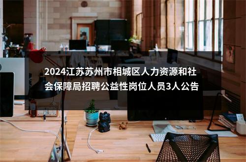 备考交流群 丨 公众号:常州中公教育丨点击咨询面试备考讲座 丨 往年面试题目 丨 招考信息汇总 因工作需要,苏州市相城区人力资源和社会保障局面向社会公开招聘公益性岗位工作人员3名。现将有关事项公告如下: