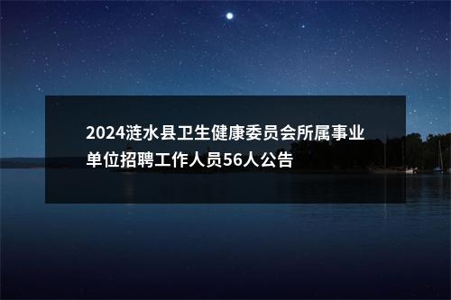公众号:常州中公教育丨医疗卫生招考信息 医疗卫生报考指导丨点击咨询 为适应我县卫生健康事业发展需要,充实医疗人才队伍,优化人员结构,根据《江苏省事业单位公开招聘人员办法》(苏办发〔2011〕46号)、《关于进一步完善全省事业单位公开招聘工作人员的意见》(苏人社发〔2022〕153号)、《关于开展农村订单定向医学生免费培养工作的通知》(苏卫科教〔2015〕21号)、《关于扎实做好大学生乡村医生专项计划和编制保障计划工作的通知》(苏人社发〔2024〕1号)和市委组织部、市人力资源和社会保障局《关于进一步做好事业单位公开招聘工作的通知》(淮人社发〔2011〕525号)等有关文件规定,经涟水县委、县政府同意,决定面向社会公开招聘事业单位工作人员56名(其中事业编制人员51名,编外合同制人员5名)。现将有关事项公告如下: